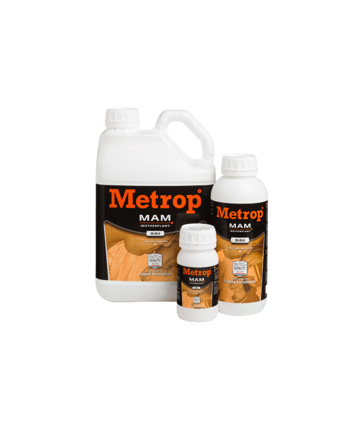 MAM fertilizante biológico para plantas madre de Metrop, es un nutriente para plantas madre de alta calidad, que contiene todos los macro y microelementos necesarios para plantas que producen esquejes continuamente.